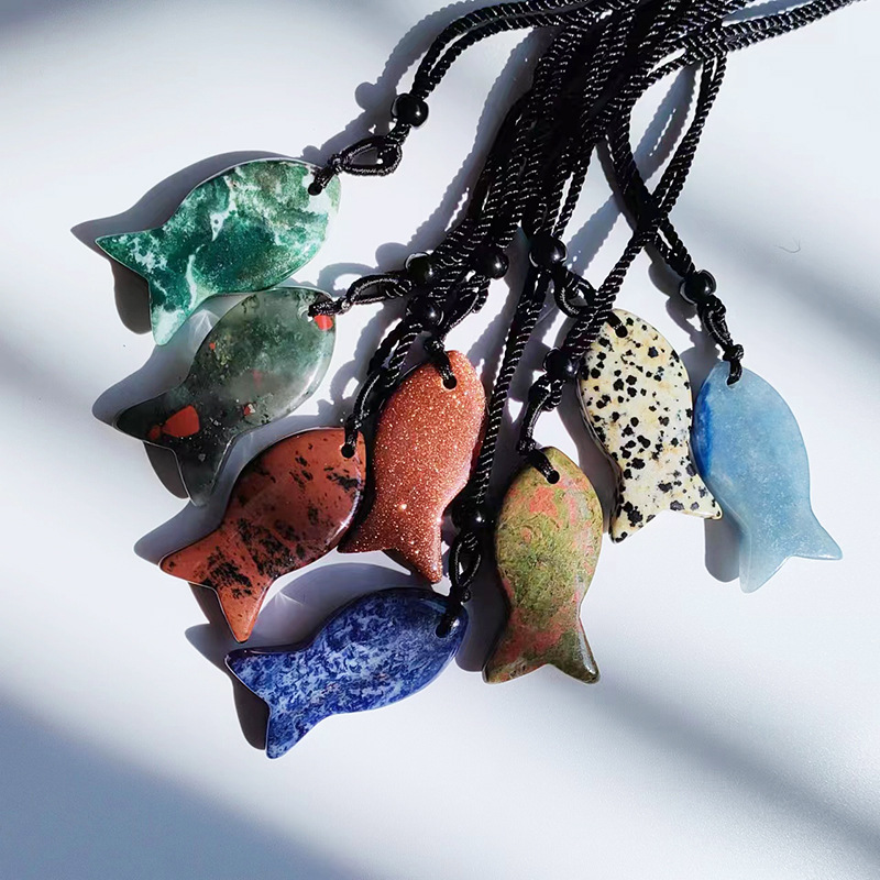 Natural Crystal Fish-Shaped Pendant Braided Rope, More Than Every Year Necklace, Fish Leaping Gantry Pendant Necklace Accessories