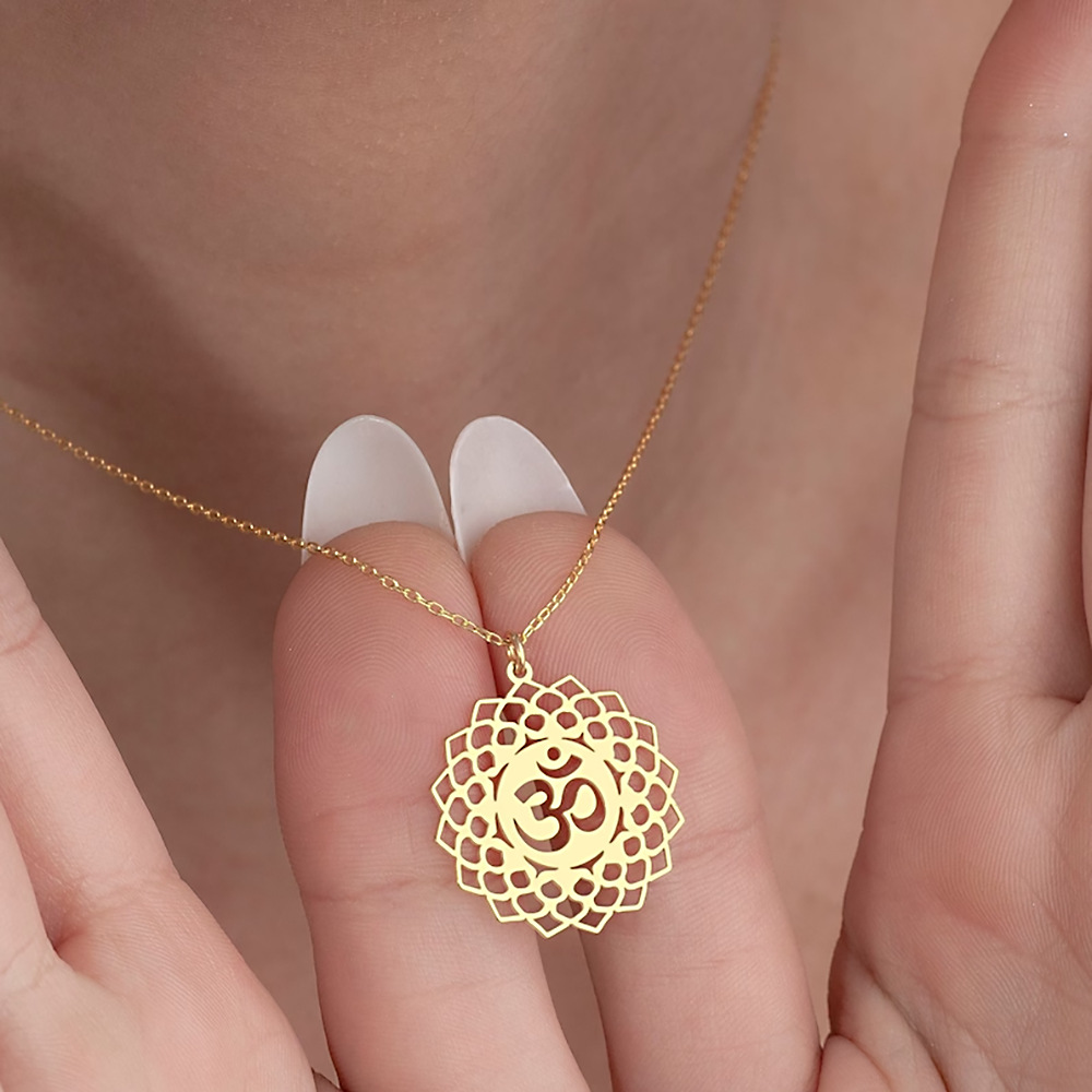Symbol Necklace Lotus Pendant Necklace Women Personalized Stainless Steel Jewelry Hindu Collar Gift