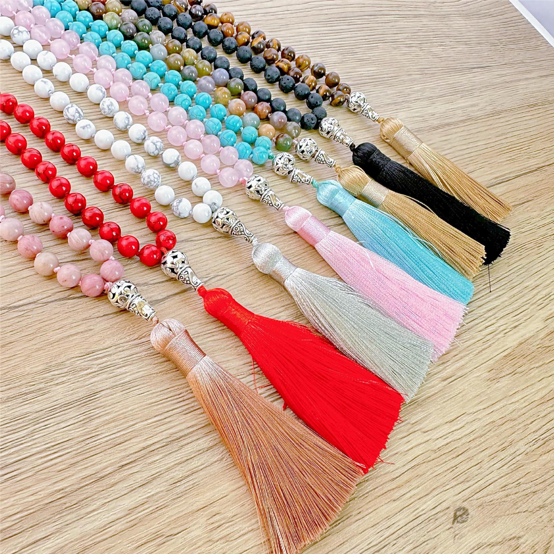 Cross-border hot sale natural stone Red Pine Indian agate red grain stone turquoise Tiger Eye Stone tassel new necklace