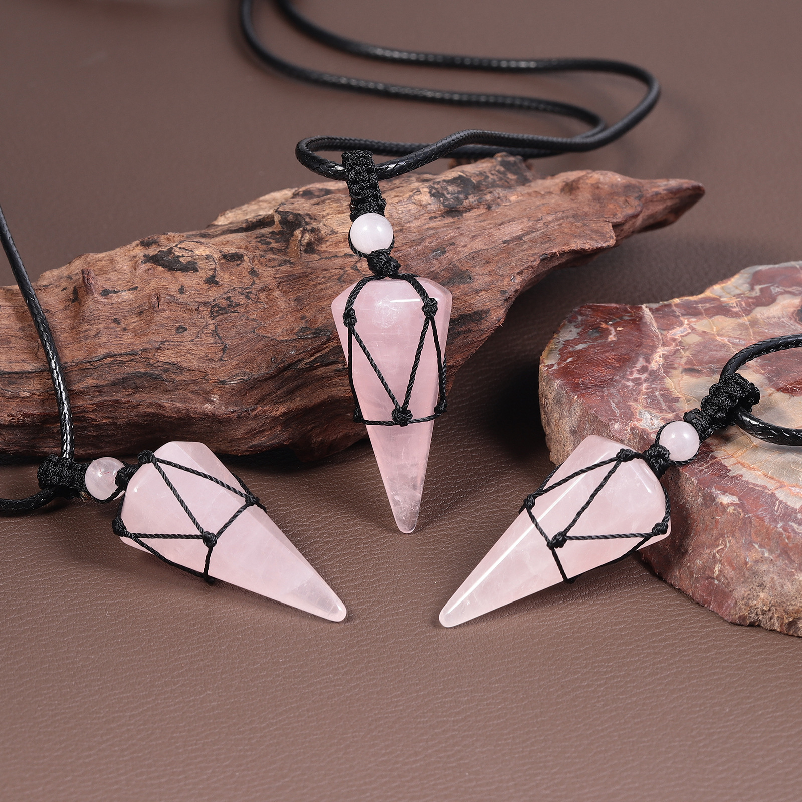 Natural Stone Crystal Agate Woven Semi-Precious Stone Cross Pendant Necklace Sweater Chain European and American Hot Selling Jewelry