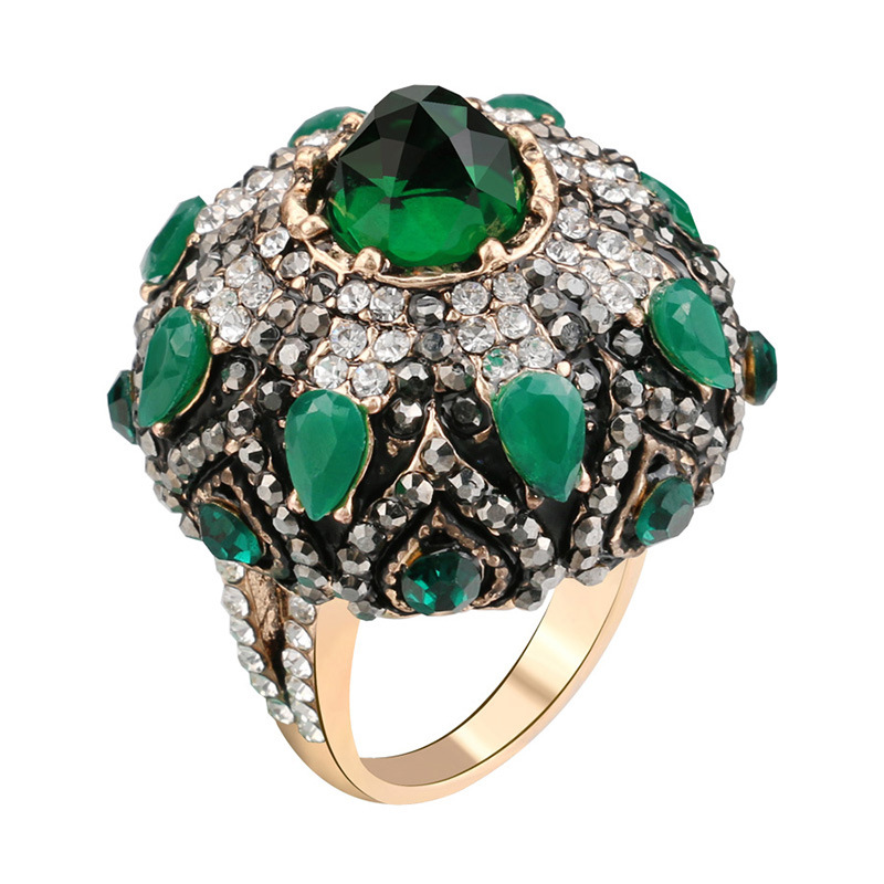 AliExpress best selling European and American green crystal ring retro India Turkey popular ring stall wholesale supply