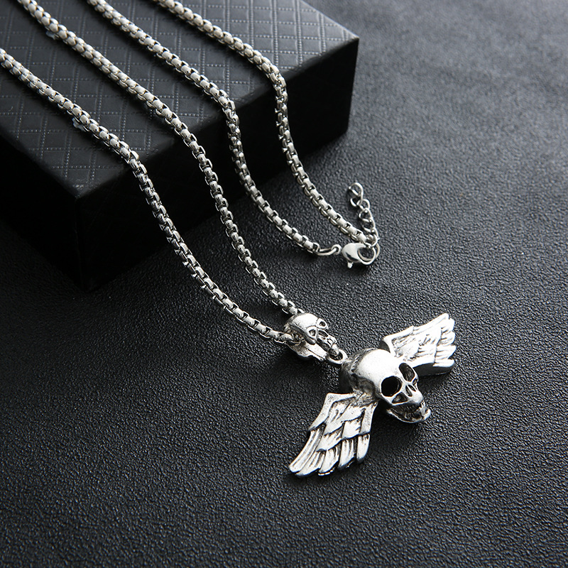 European and American Creative Steel Necklace Hip Hop Necklace Jewelry Nightclub Trendy Men's Personality Anti-stainless Steel Skull Pendant Accessories