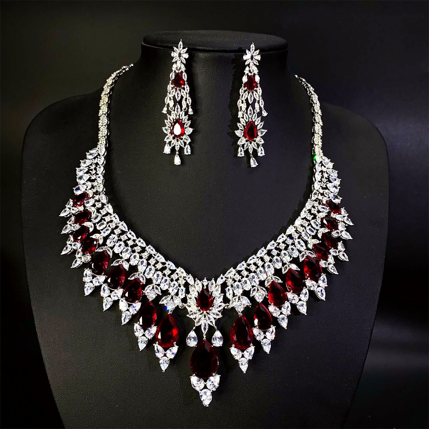 India Saudi Arabia Bridal Chain Elegant Luxury Red Blue Emerald Inlaid Heavy Jewelry Women's Jewelry