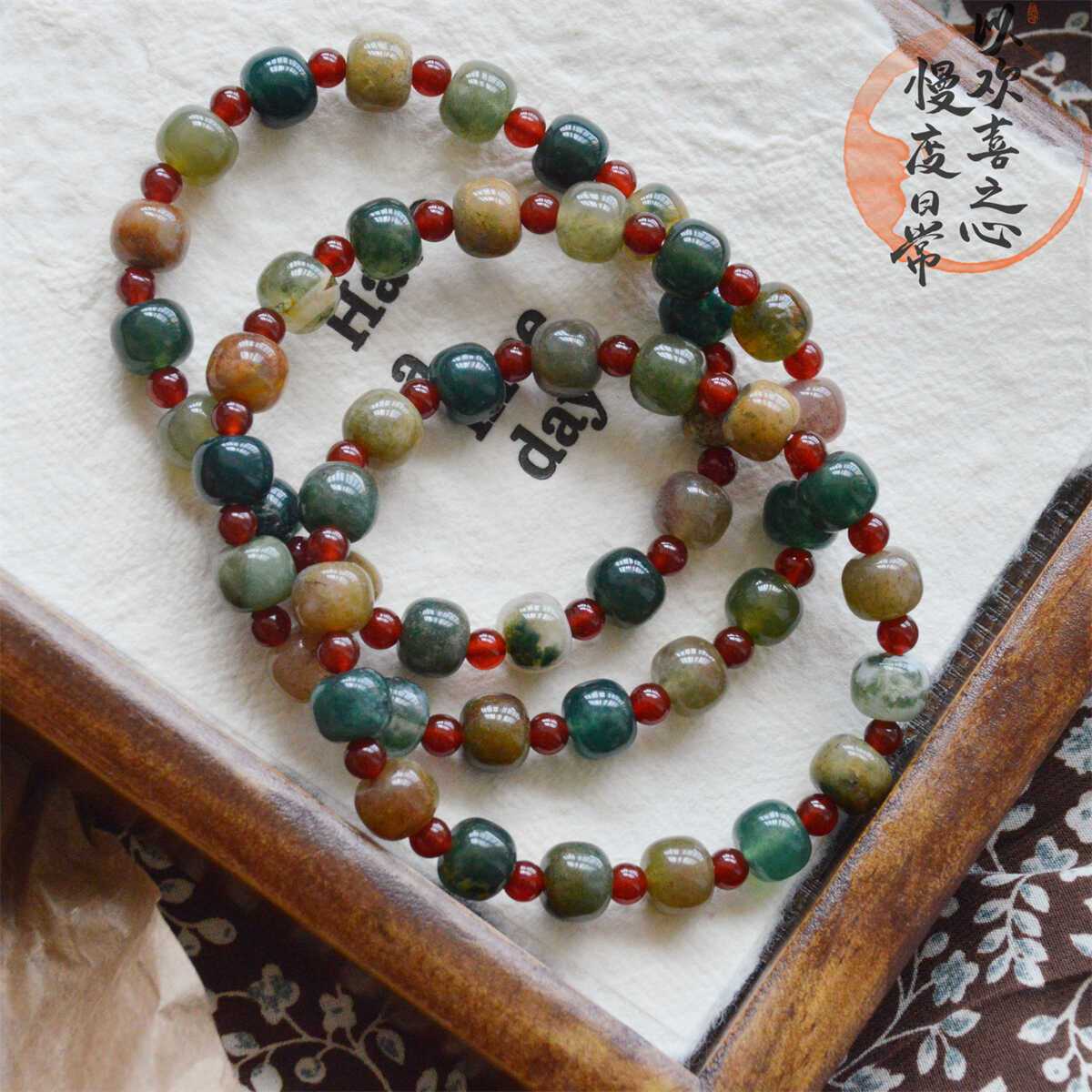 New Chinese Style Indian Agate Beaded Bracelet, Retro Cool Bracelet, Niche Light Luxury Style, Exquisite National Style Bracelet