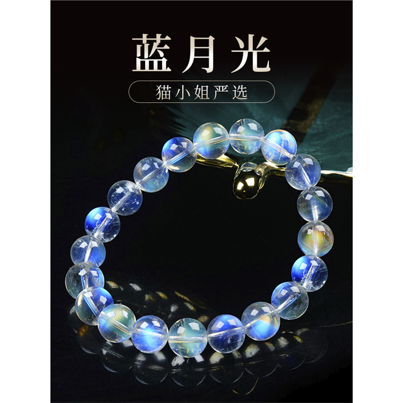 [Miss Cat] 7A Vitreous Blue Moonlight Bracelet Women's Collectible Indian Ice Moonstone Bracelet Hand Cards