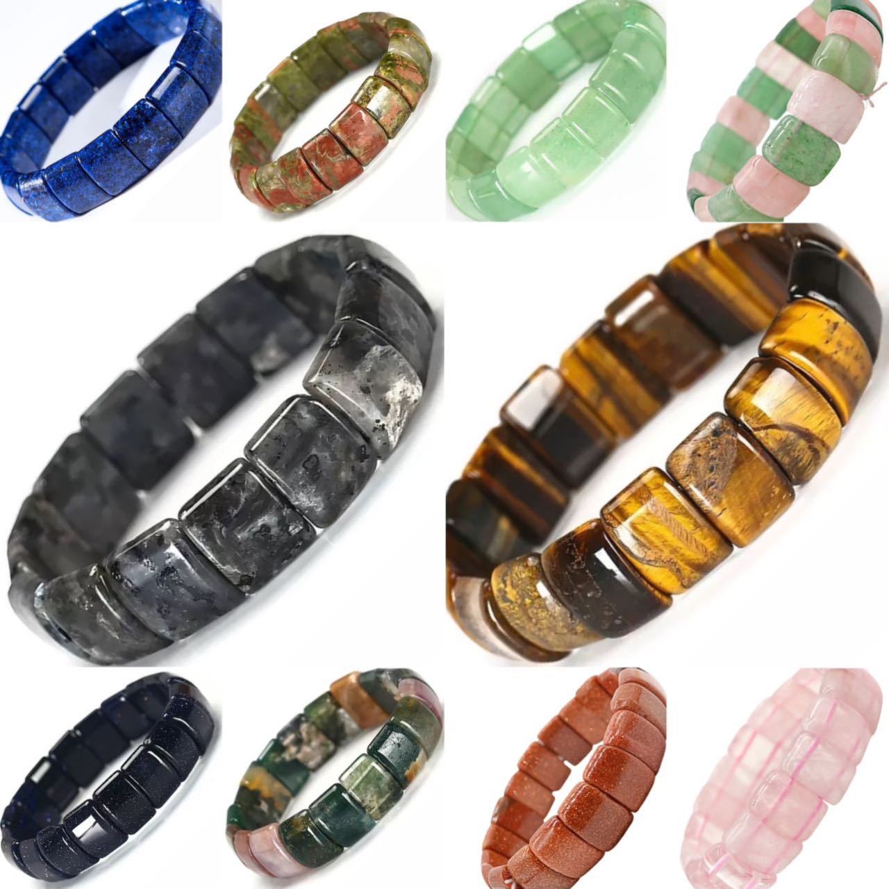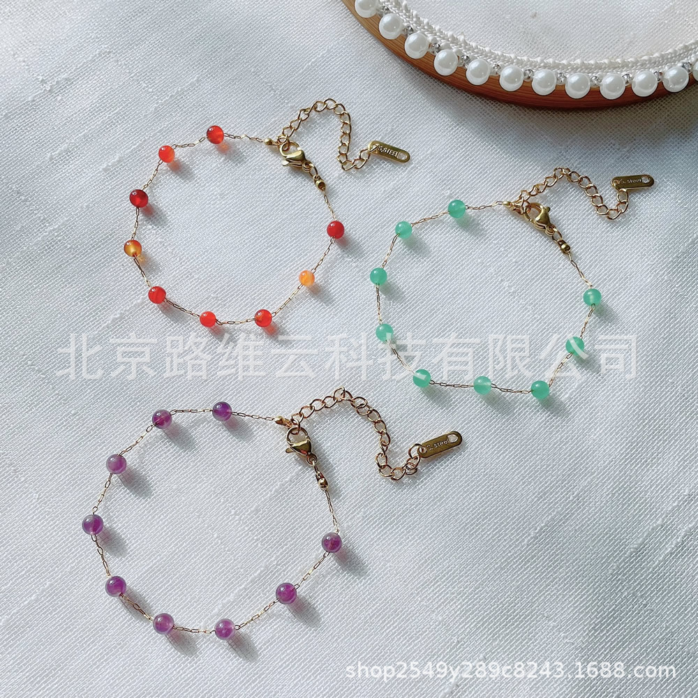 Cross-border New Natural Stone Bracelet Gimmel Beads Crystal Agate Gem Titanium Steel Bracelet No Fading