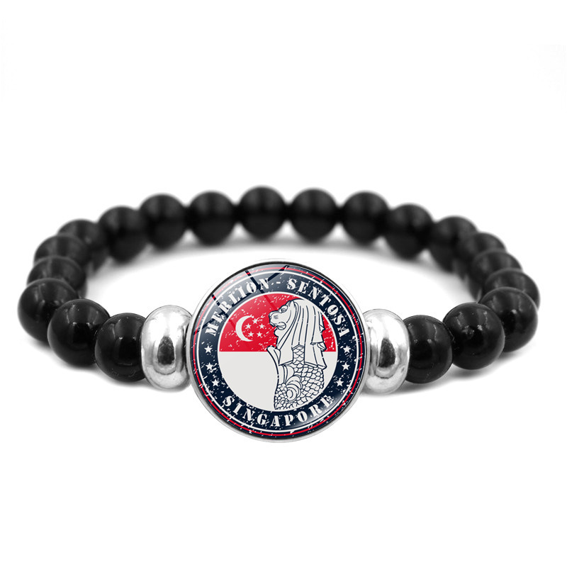Singapore Flag Logo Architectural Bracelet Men's and Women's All-match Time Gem World Flag Woven Beaded Jewelry