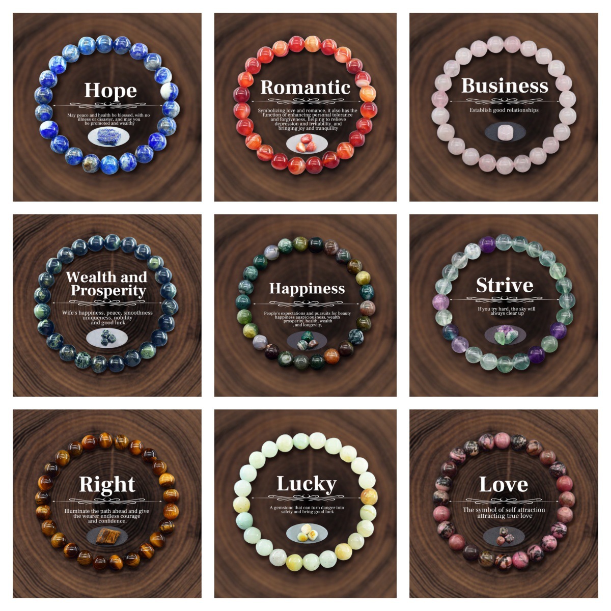 Cross-Border 8mm Amazon Temu Amethyst Tiger Eye Elastic Bracelet Rose Stone Agate Mixed Color Beads Bracelet