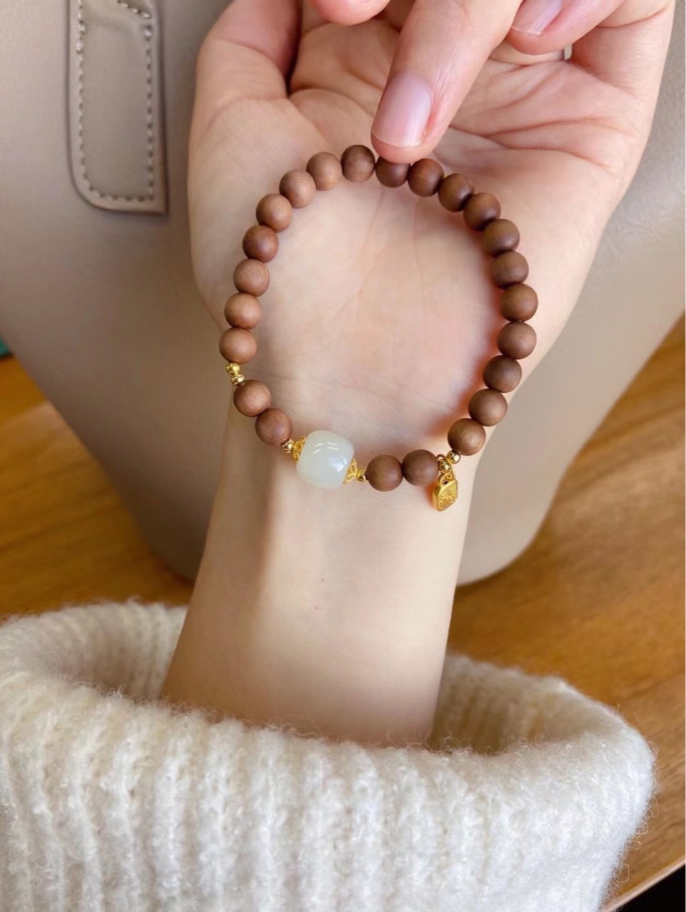 India Old Mountain Sandalwood Bracelet Women's Bracelet Sandalwood Hetian Jade Lutong Benmingnian Buddha Beads