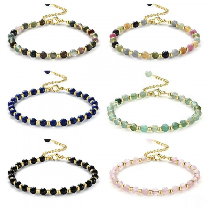 Women's Natural Stone Bracelet Gold Beads Green Aventurine Lapis Lazuli Adjustable Bracelet Ladies 6mm Mixed Color Crystal Bracelet