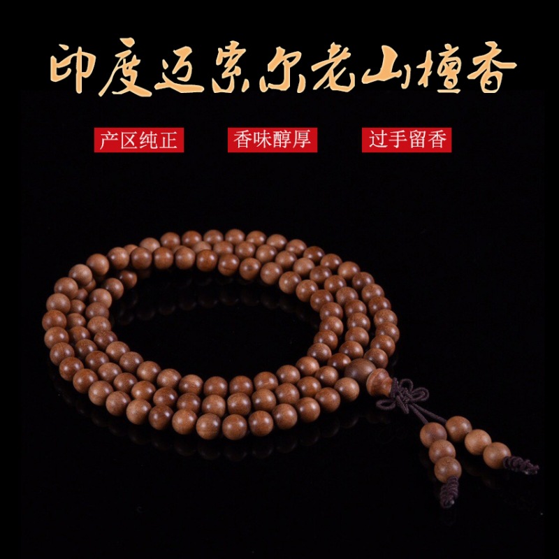 India's Old Mountain Sandalwood Bracelet 0.8 Submerged Black Meat Buddha Bead Wen Play Bracelet Sandalwood 108 for Men and Women Read Bead Chain Wholesale
