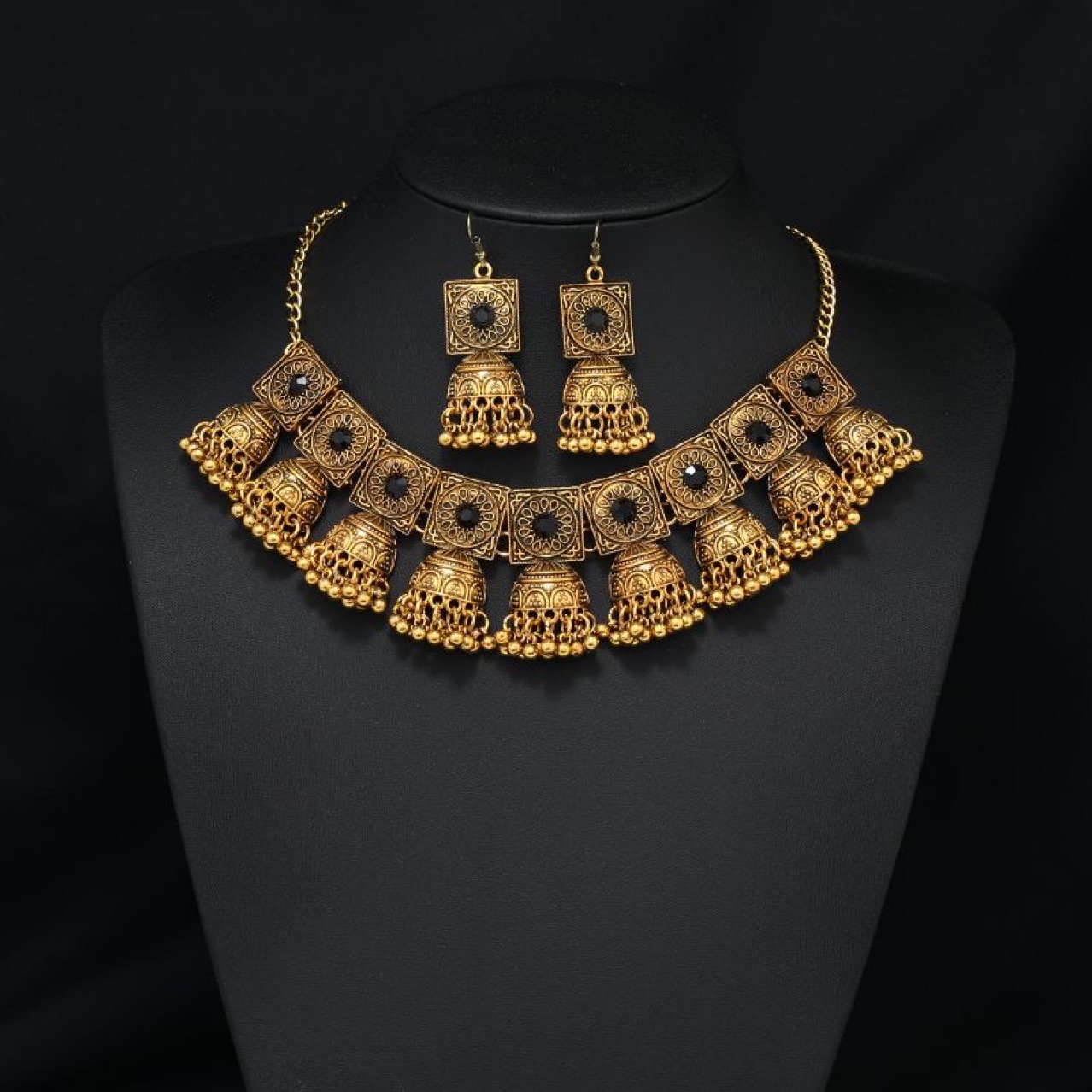 European and American Retro Personalized Clavicle Chain Short Style Indian Ethnic Style Necklace Bohemian Earrings Set for Women