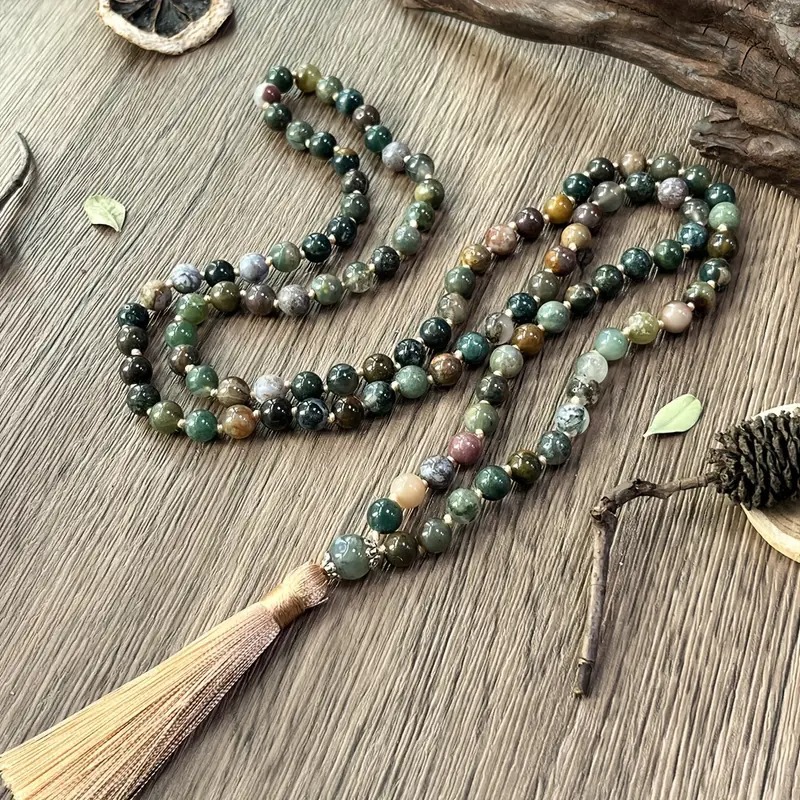 Chengyi Jewelry Cross-Border Natural Stone Necklace 108 Indian Agate Yoga Long Mala Rosary Necklace Jewelry