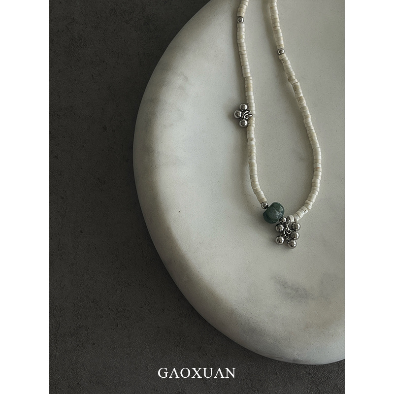 New Chinese Style Turquoise Titanium Steel Tassel Beaded Necklace Light Luxury Niche High-End Ethnic Holiday Style Stacked Clavicle Chain