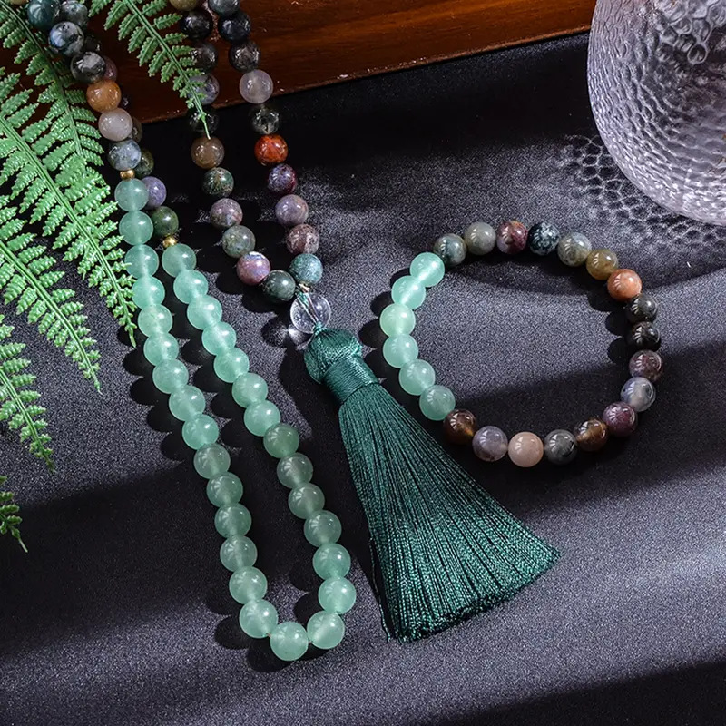 Yanni Cross-Border New Stone Necklace 108 Indian Agate African Turquoise Yoga Popular Long Necklace
