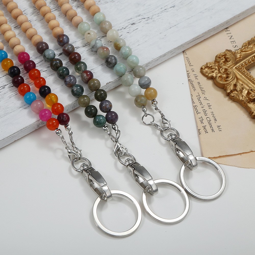 Amazon Stone Wooden Beads Mask Chain Hanging Chain Work Documents Lanyard Necklace ID Badge Easy Pull-up Buckle Sweater Long Necklace