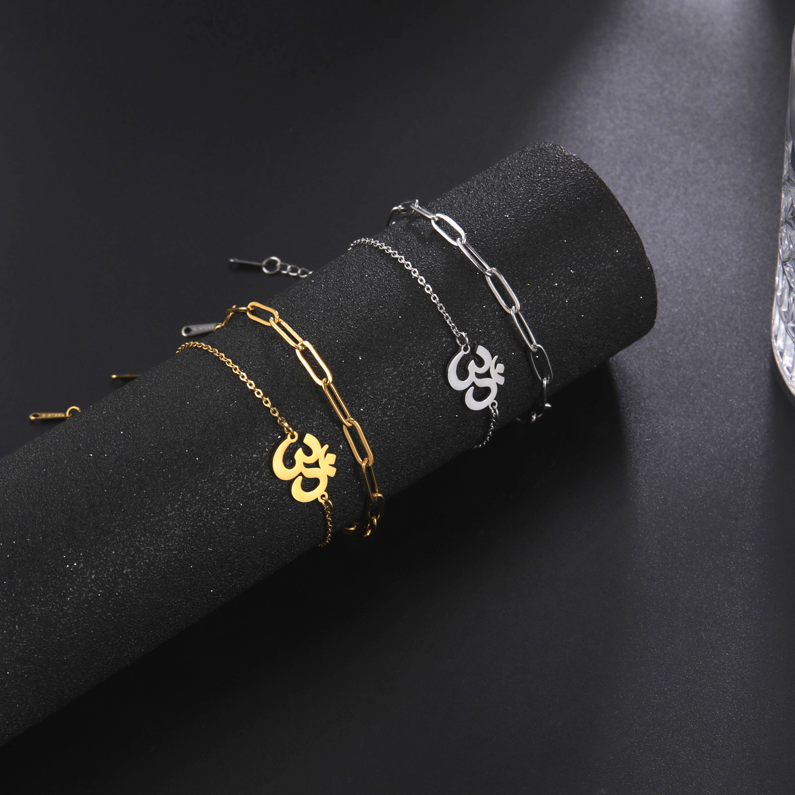 Foreign trade hot fashion cut titanium steel jewelry hollow Hindu symbol pendant 304 stainless steel bracelet