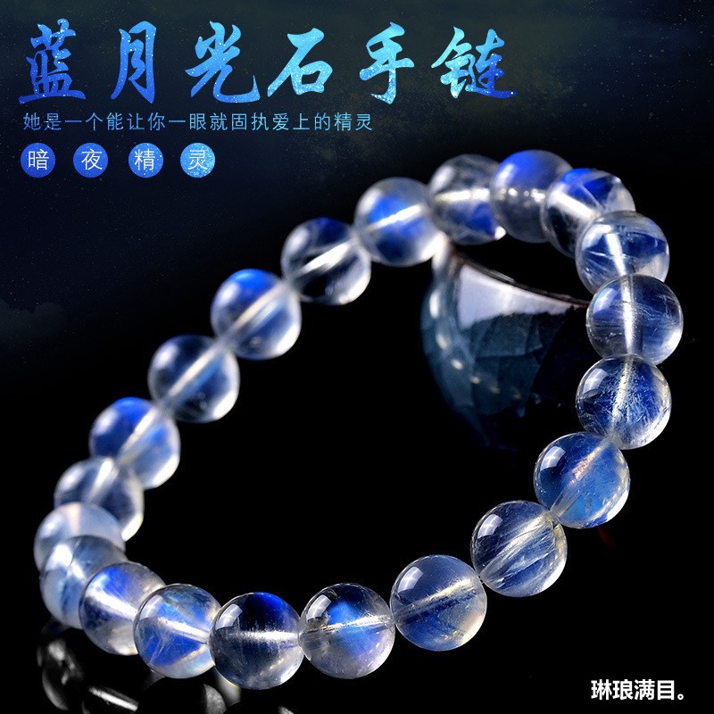 Collectible Natural Indian Ice Vitreous Strong Blue Light Moonstone Bracelet Women's Blue Moonlight Crystal Single Ring Bracelet
