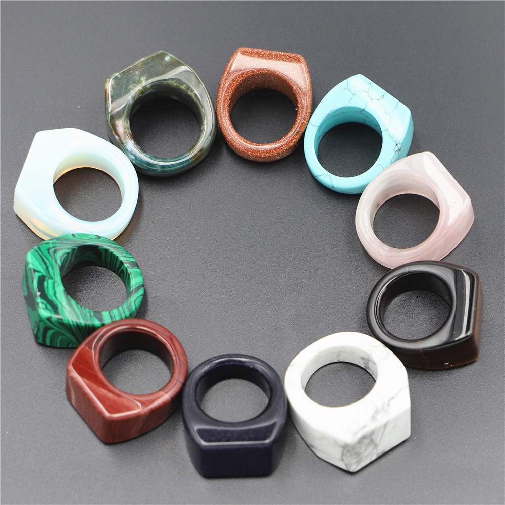 Cross-border Popular Export Dedicated to Natural Stone Turquoise Rose Quartz Indian Agate Protein Tiger Eye Stone Generous Ring