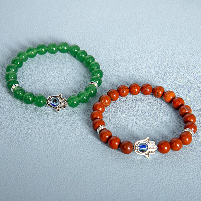 Fatima Palm Demon Eye Bracelet White Pine Green Gold Tiger Eye Volcanic Stone Bracelet Colorful Stone Cross-border Special