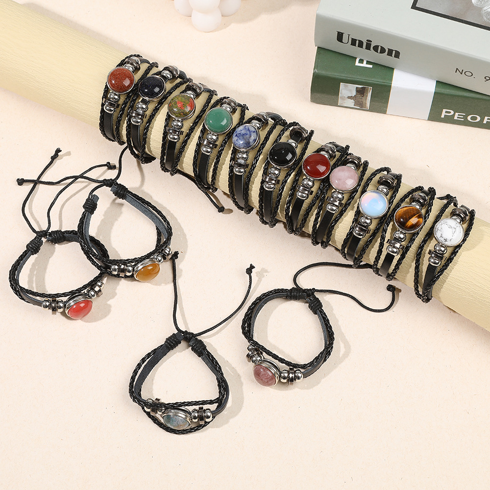 Natural Crystal Agate Stone Inlaid Leather Bracelet Gemstone Bracelet Amethyst Strawberry Crystal Time Gemstone Bracelet