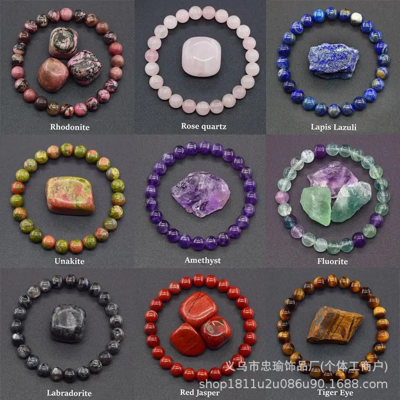 Cross-Border Popular Crystal Bracelet 8mm Red Emerald Amethyst Strawberry Crystal Lapis Lazuli Natural Stone Bracelet Factory Wholesale