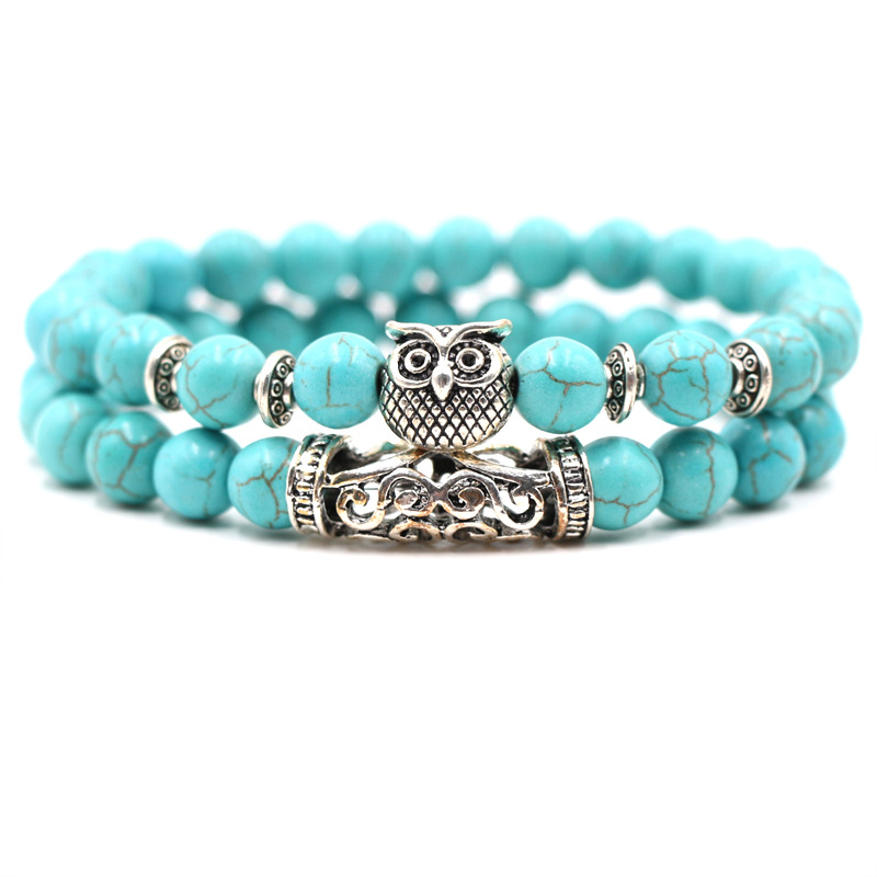 Cross-border supply jewelry wholesale volcanic rock White turquoise owl Stone combination bracelet multi-circle beads bracelet