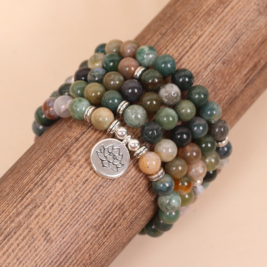 108 beads bracelet Lotus pendant multi-layer bracelet Indian stone beaded bracelet