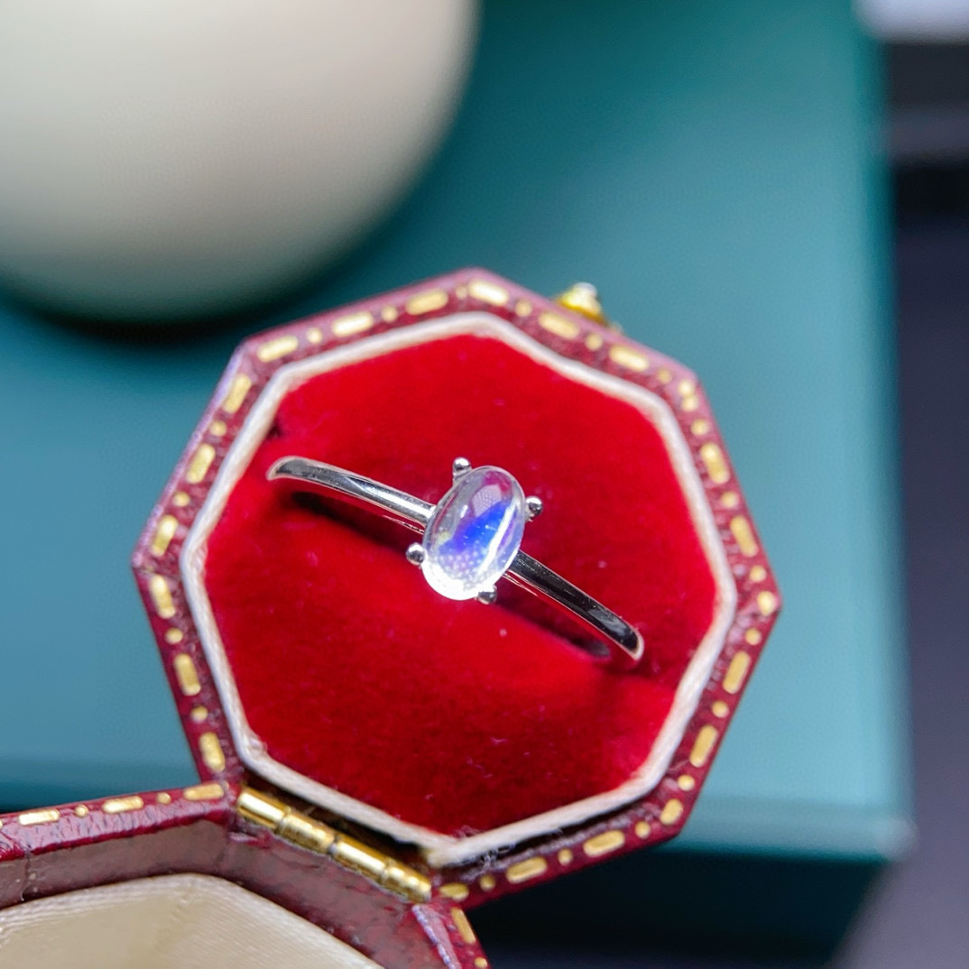 S925 Sterling Silver Ring Natural Blue Moonlight Color Treasure Ring Jewelry Ring India Blue Moonlight Factory Outlet