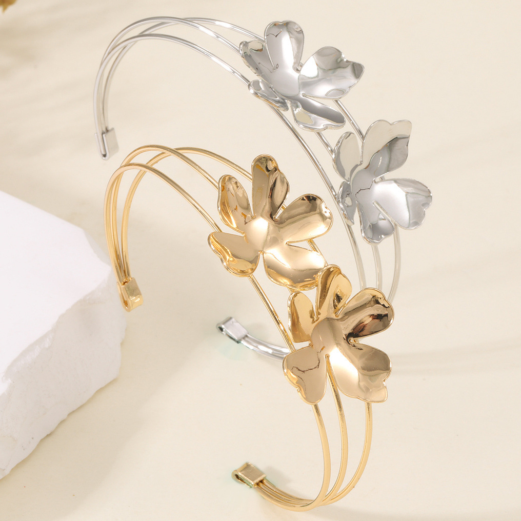 European and American Metal Style Flower Leaf Petals Open Bracelet Temperament Fresh and Simple High-end Style Bracelet for Women