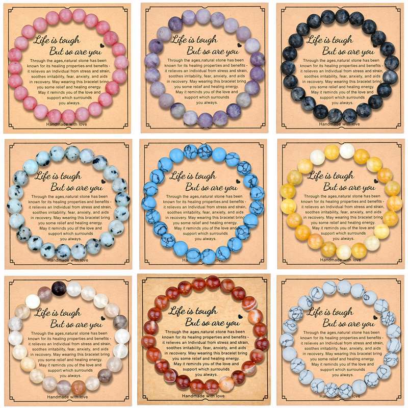 8mm Natural Stone Bracelet with Card Amazon Explosions Tourmaline Bracelet for Men and Women Friendship Bracelet Holiday Gift