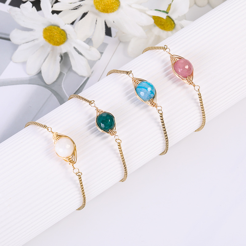 European and American Cross-border Explosions Personalized Natural Stone Bracelet Titanium Steel Agate Bracelet Advanced Sense Simple Adjustable Bracelet