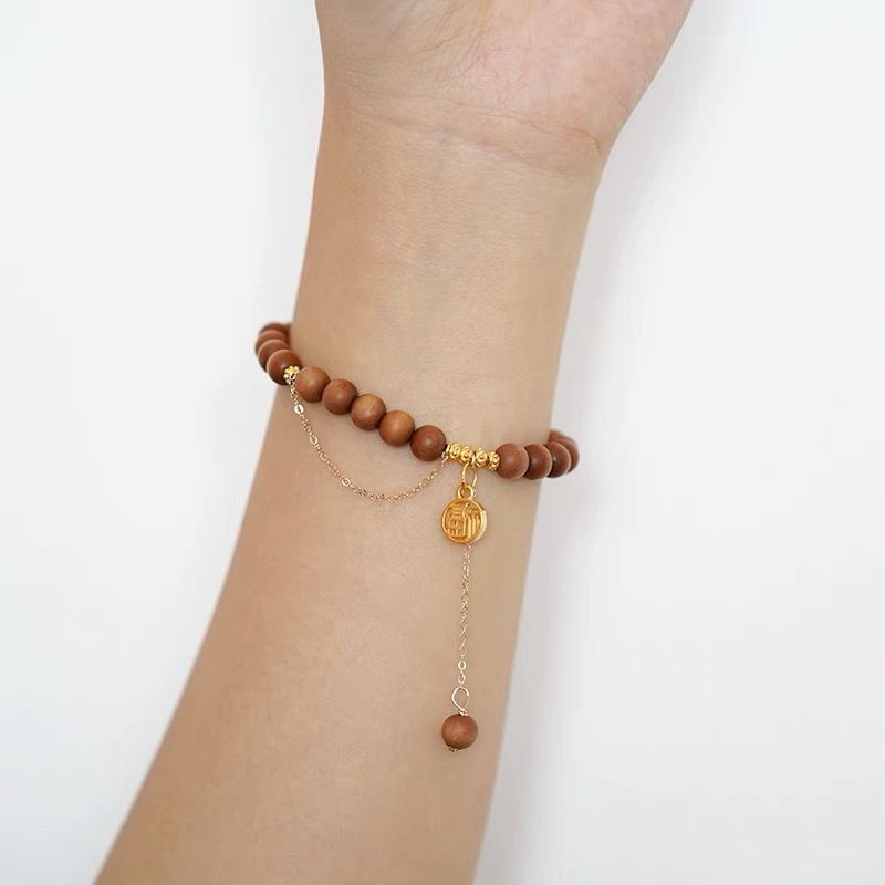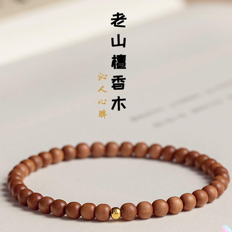 Indian Laoshan Sandalwood Bracelet for Women, Walking Perfume, Black Meat Old Material Sandalwood Single Circle Buddha Bead Blessing Bracelet
