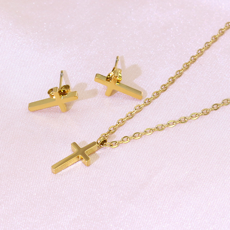 XS Spot Cross-Border Stainless Steel Cross Necklace Earrings Set 2025 New 18K Gold Clavicle Chain Women's Titanium Steel