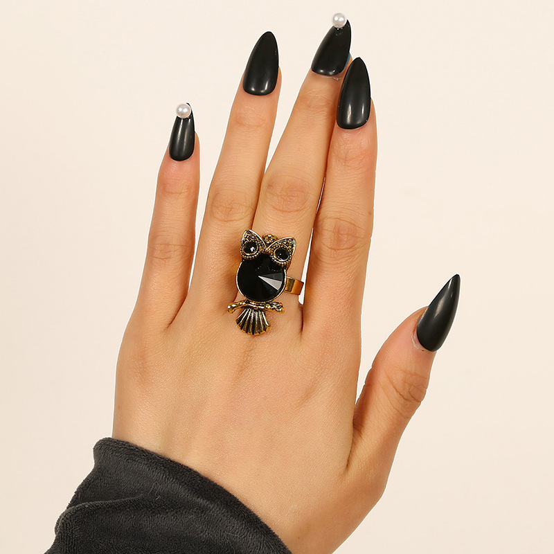 Cross-Border Personalized Retro Open Owl Ring Indian Style Fashion Gemstone Adjustable Ring