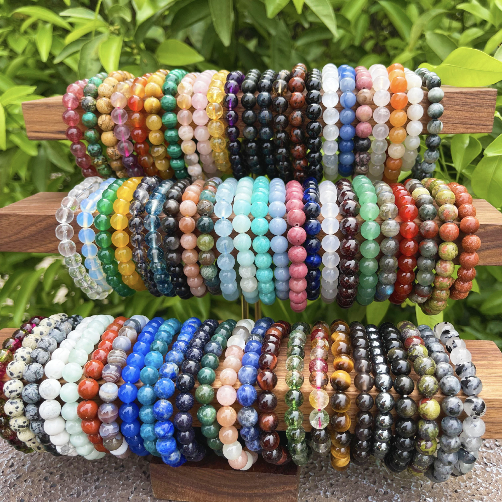 European and American Cross-border Explosions 8mm Natural Stone Beaded Bracelet Obsidian White Turquoise Elastic Bracelet Hot Selling