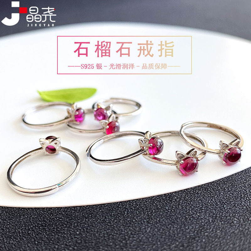 Jingyao Natural Purple Tooth Black Garnet Ring Cute Cat Head S925 Crystal Ring Fashion Personality Women's Stone