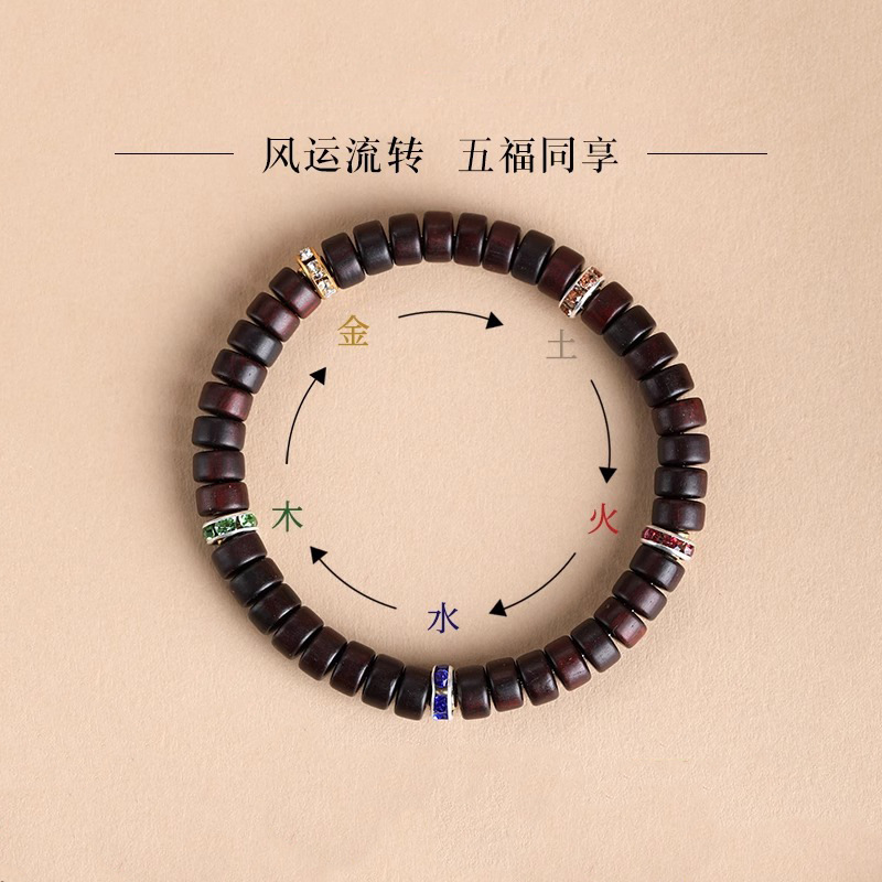 Natural Indian Small-Leaf Red Sandalwood Five Blessings Tablets Five Elements Disc Play Bracelet Bracelet for Men and Women Valentine's Day Birthday Gift
