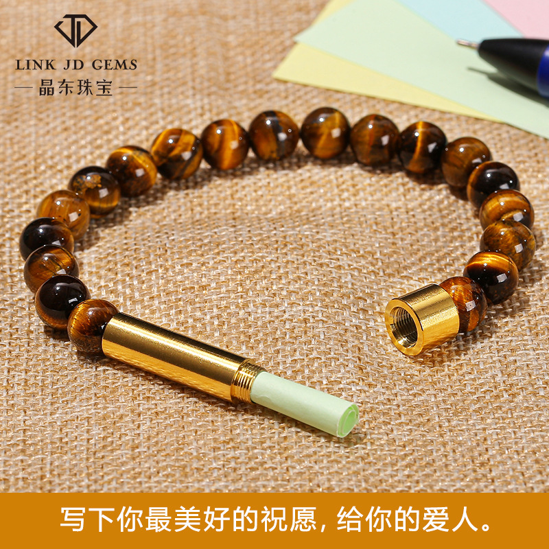Jingdong jewelry natural stone titanium steel Gold round tube bracelet creative knob can hold wish note bracelet wholesale