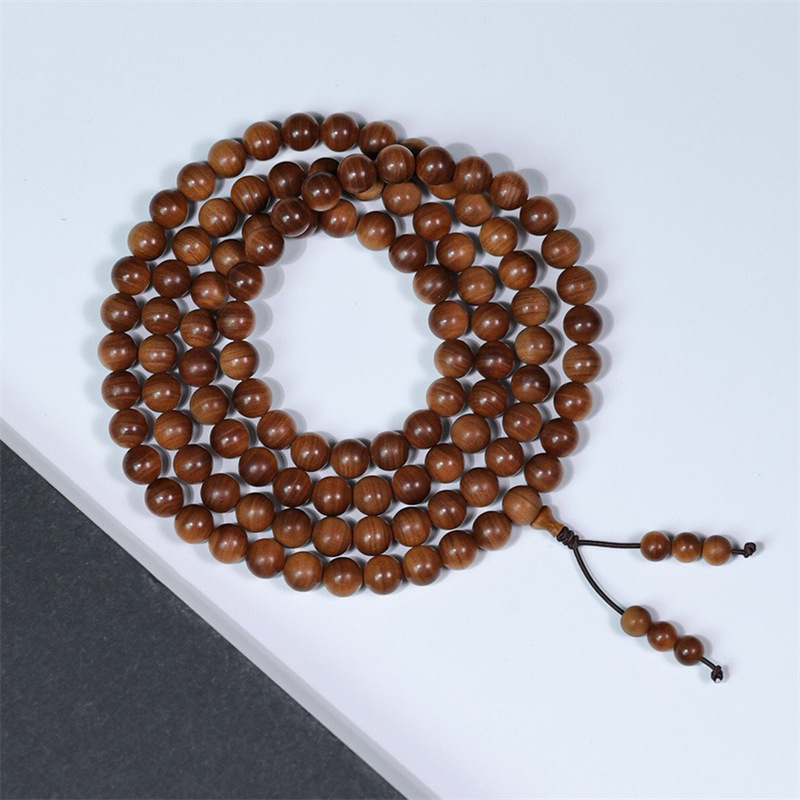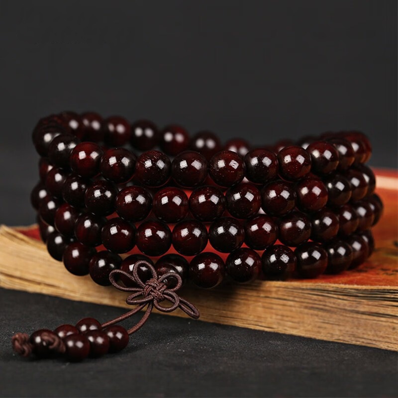 Indian Small-Leaf Red Sandalwood Old Material 108 Buddha Beads Bracelet Rosewood Beads with Star Cultural Toy Rosary Beads for Men and Women