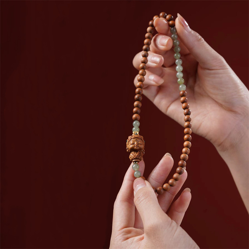 India Old Mountain Sandalwood Green Mother Buddha Beads Bracelet Old Sandalwood with Hetian Jade Beads Women's Hand Beads Bracelet Wholesale