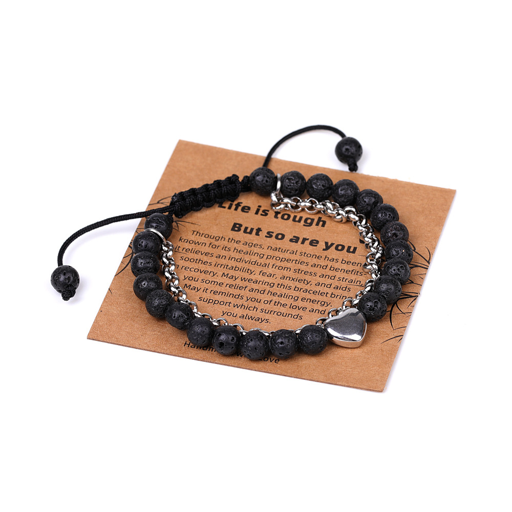 Stainless Steel Chain Heart-Shaped Volcanic Stone Double-Row Woven Aromatherapy Bracelet Pink Crystal Tiger Eye Stone Peach Heart-Shaped Couple Bracelet