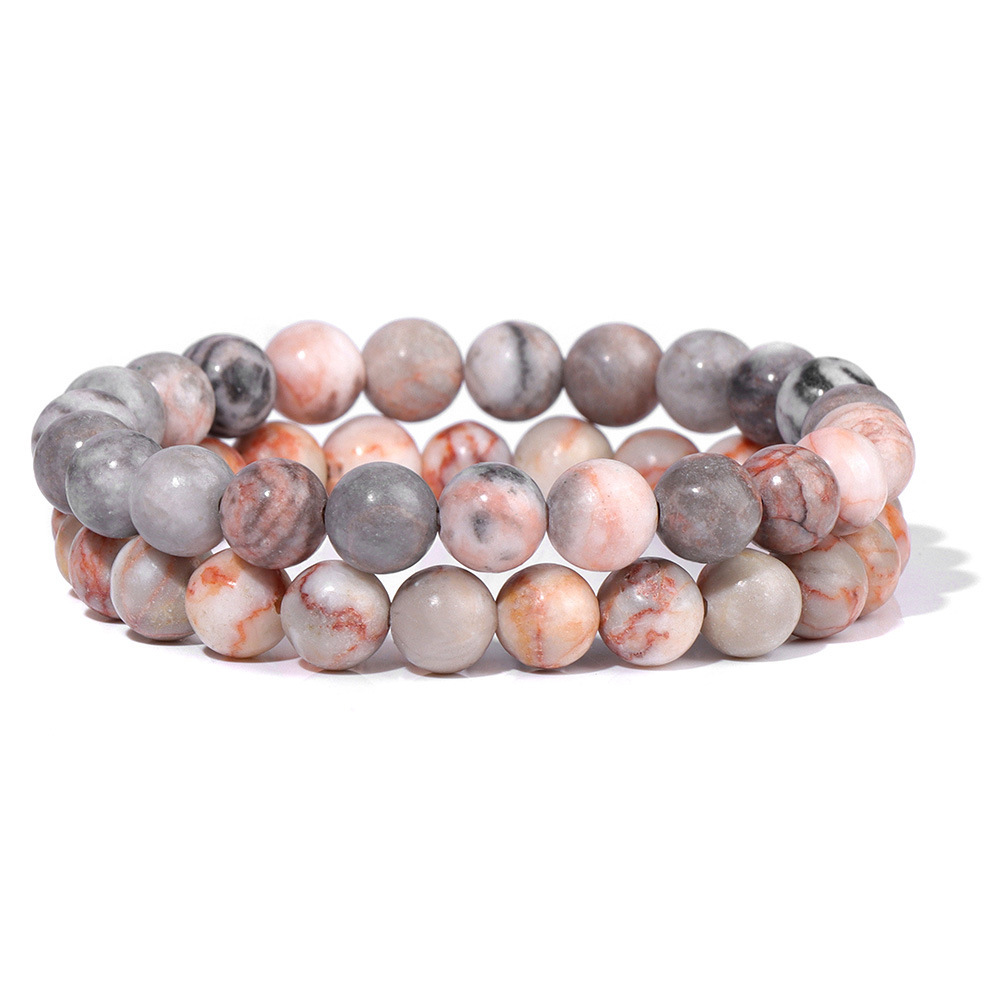8mm Stone Bead Bracelet Men's and Women's Two-Piece Set Retro Literary Style Couple's Bracelet 2024 European and American Cross-Border Style