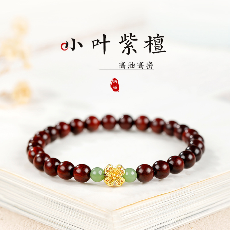 Authentic Natural High-Density Indian Small-Leaf Red Sandalwood Bracelets for Men and Women, New Chinese-Style Wooden Couple Bracelets