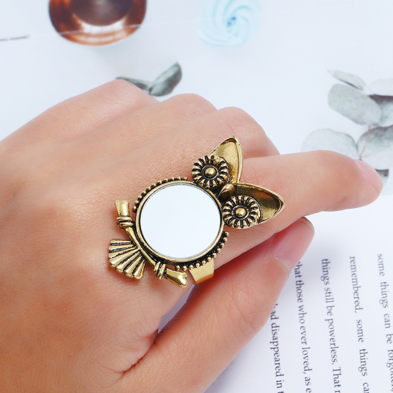 Cross-border supply personality opening owl ring Indian fashion mirror adjustable ring factory direct sales