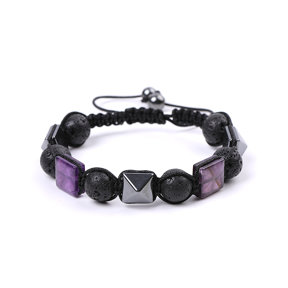 Square Natural Rhodolite Amethyst Aromatherapy Bracelet for Couples, Can Be Used with Essential Oils, Volcanic Stone Woven Bracelet Jewelry