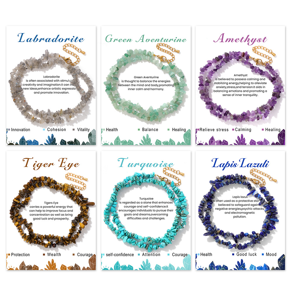 Amazon Cross Border New 3-5 Irregular Natural Crystal Gravel Women Necklace Stainless Steel Lobster Buckle Card