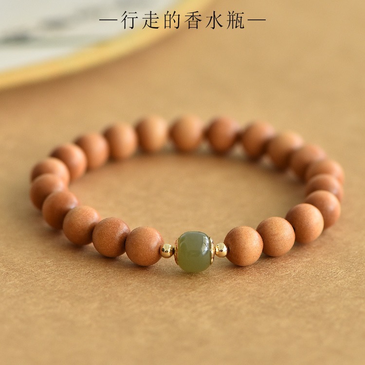 Shopkeeper recommend Old Sandalwood Bracelet with Fragrance Indian Old Sandalwood Bracelet for Women with Hetian Jade Bracelet