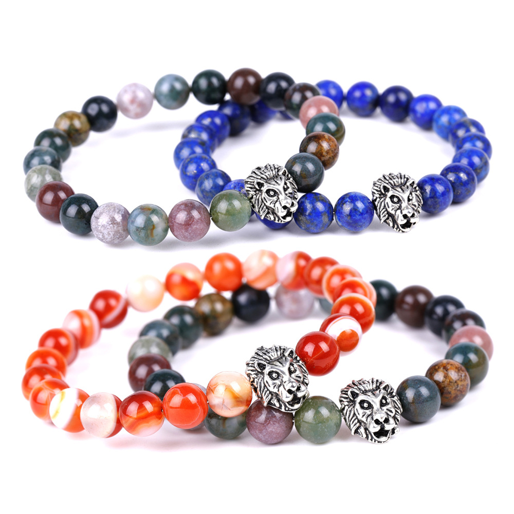 Striped Red Agate Lion Head Bracelet European and American Fashion Lapis Lazuleus Bracelet Jewelry Cross-border Amazon WISH Jewelry