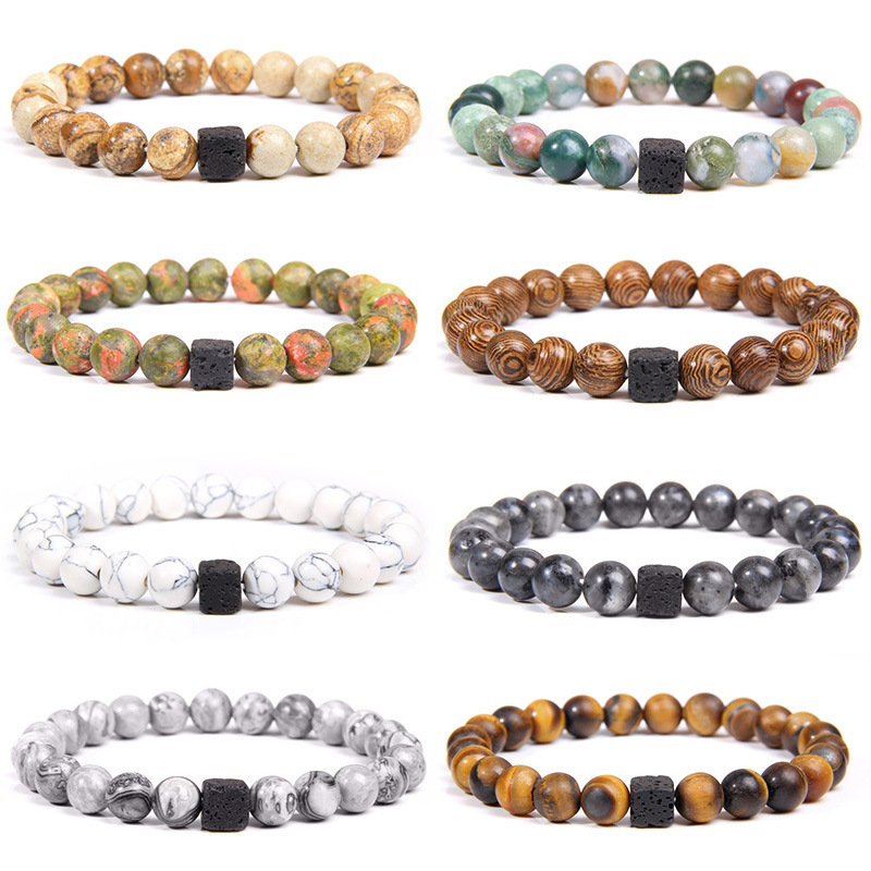 8mm Natural Stone Fresh Bracelet Tiger Eye Volcanic Stone Bracelet Elastic Unisex Bracelet Factory Direct Supply